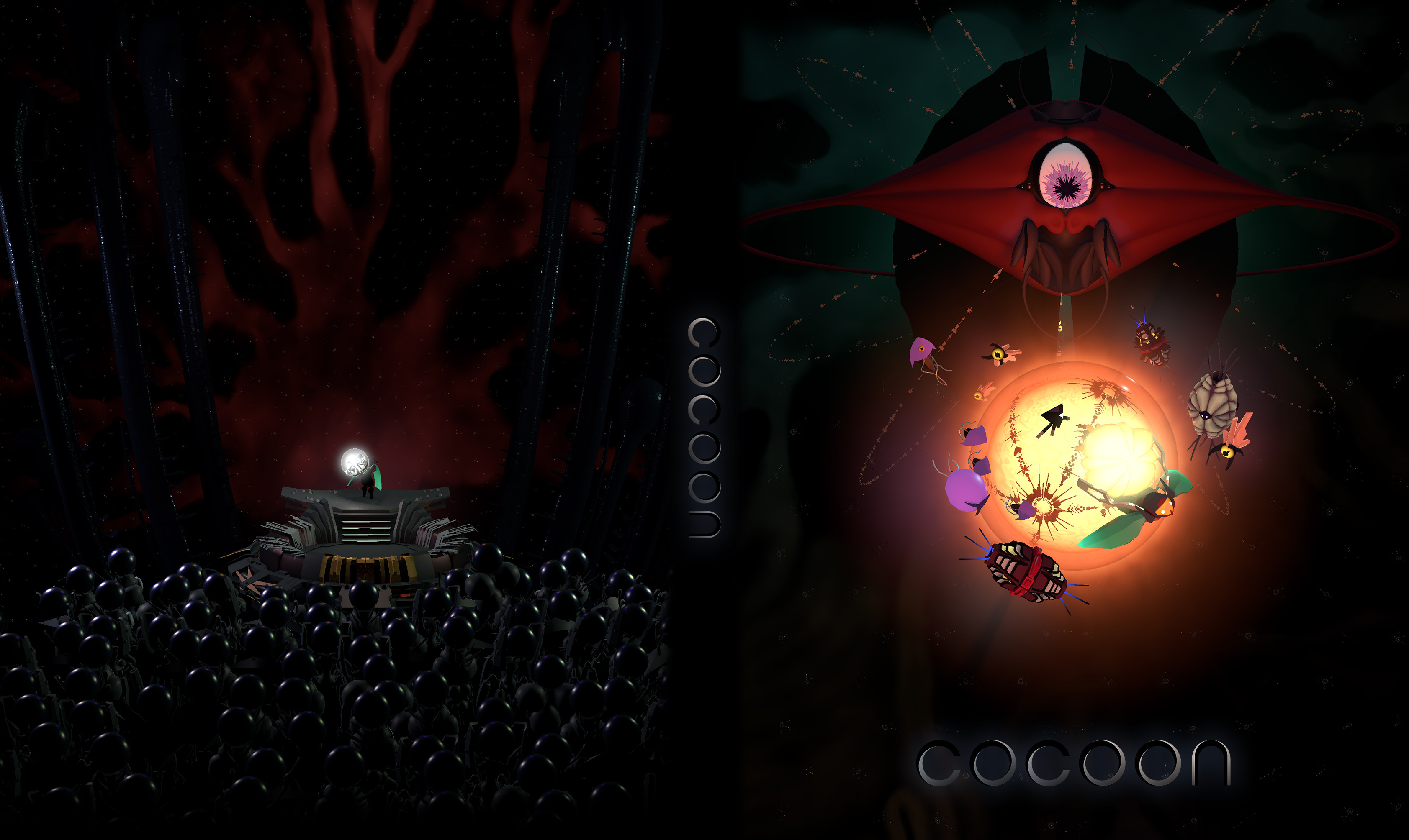 I designed the record sleeve based on unused concept art from the game. In an early proposal the vinyl incorporated the different key colors of the worlds of Cocoon, but we ended up with going for a standard black, for better audio quality. The inner sleeve art work was composed of new renders in-game models and layered with custom vector art work.